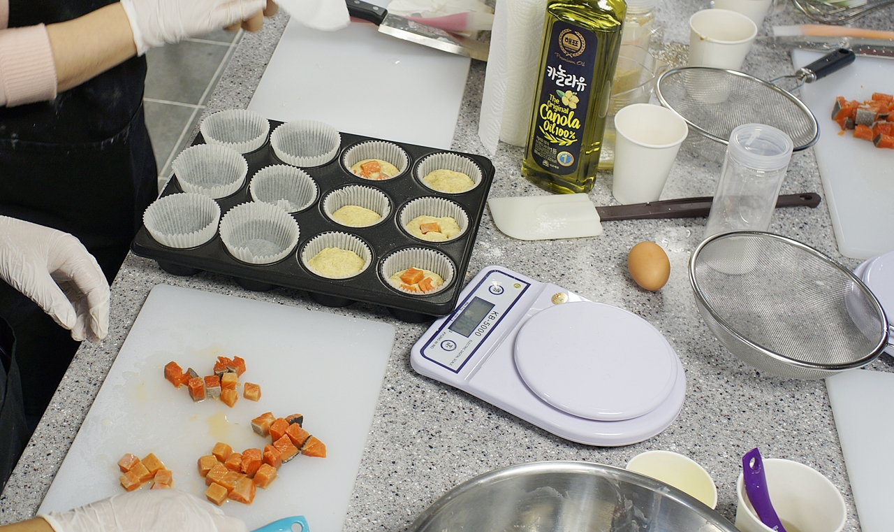 연어컵케이크와 마들렌이에요.