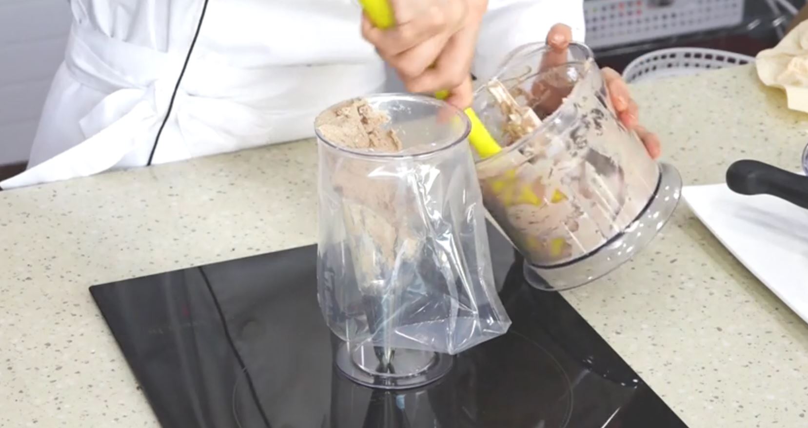 분쇄기에 준비해 놓은 두부를